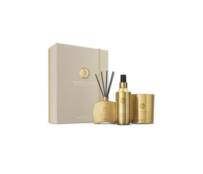 foaming shower gel 200ml, hair & body mist 50ml, mini fragrance sticks 100ml, scented candle 360g