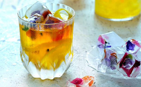 Tip: Maak je ijsklontjes extra speciaal met bloemen. Doe daarvoor eetbare bloemen in je ijsklontjesvorm. Vul de vorm voorzichtig met water en zet hem tot gebruik in de vriezer.