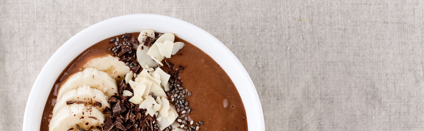 Os smoothies frios podem ser verdadeiramente deliciosos, sobretudo se incluírem chocolate preto! Sabia que o cacau é conhecido por ser um superalimento? Na sua forma pura, o cacau em pó contém muitos antioxidantes, que combinados com a banana, rica em potássio, pode ajudar a controlar a tensão arterial. Com a proteína da manteiga de amendoim, este smoothie constitui uma forma saciante, nutritiva e deliciosa de começar o dia. Toca a misturar.